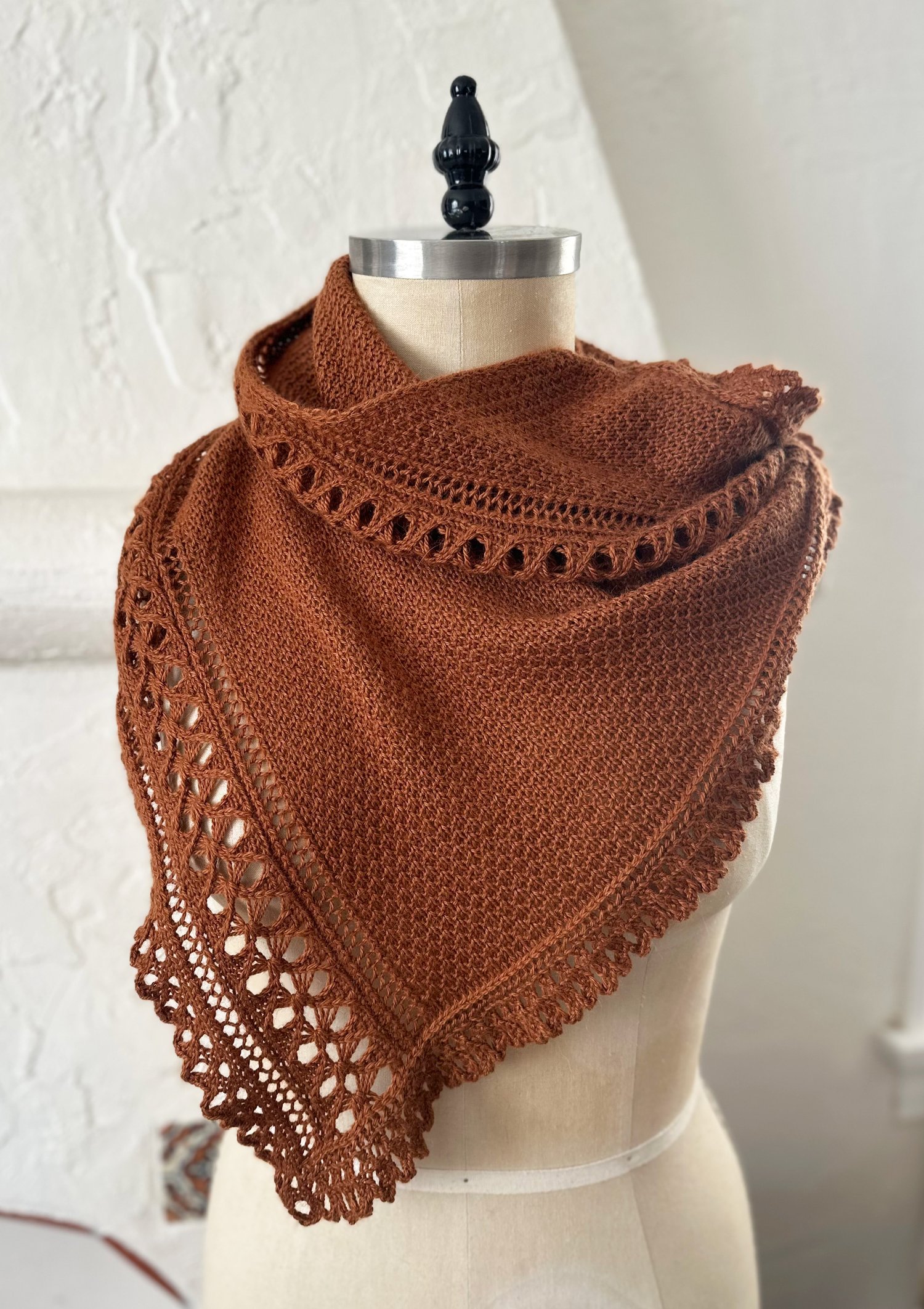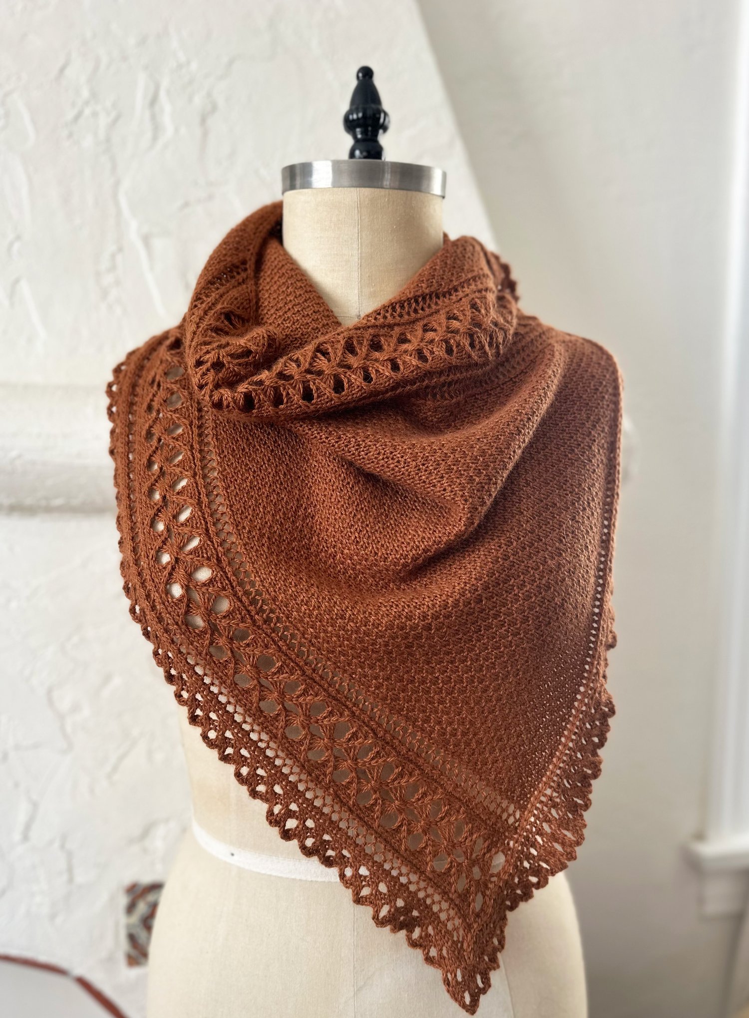 Alterations in gauge will affect yarn requirements and finished size. Please note the lace is very stretchy.