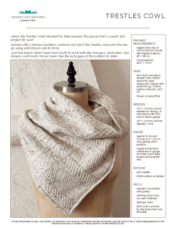 Here's the Trestles Cowl! Worked flat, then seamed, this gnarly knit is a super fast project fer sure!